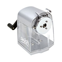 Swash Desktop Sharpener Pk 2 Robust ABS casing and durable long life cutter. Triple jaw clutch grip. Self-feeding with auto-stop. Complete with desk clamp. Takes all standard pencils up to 8mm diameter.